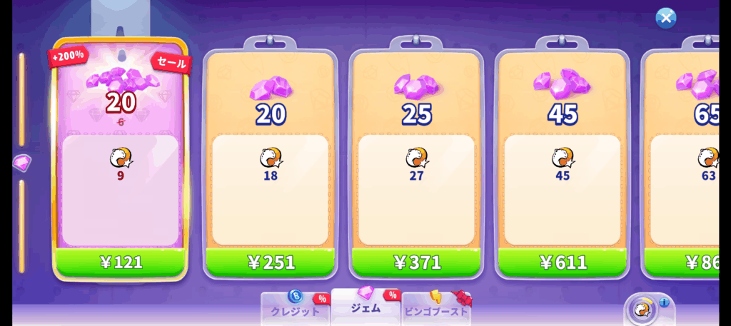 ⇧セールで121円は1回買ったら無くなって121円+251円+251円の累計3回課金を取り合えずやる。